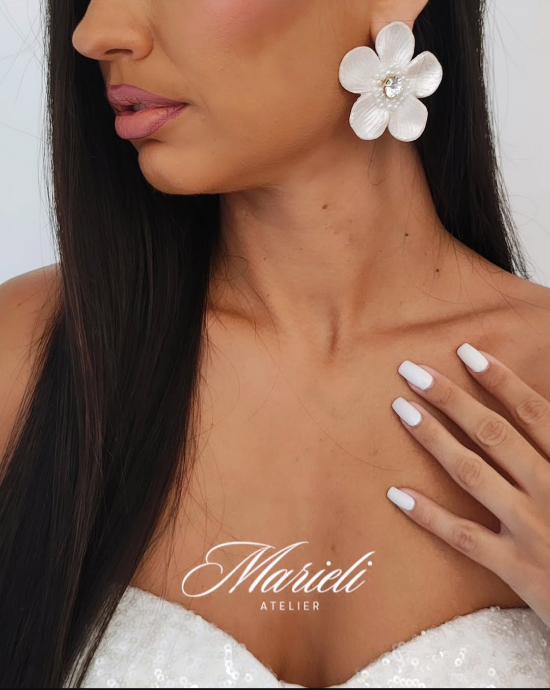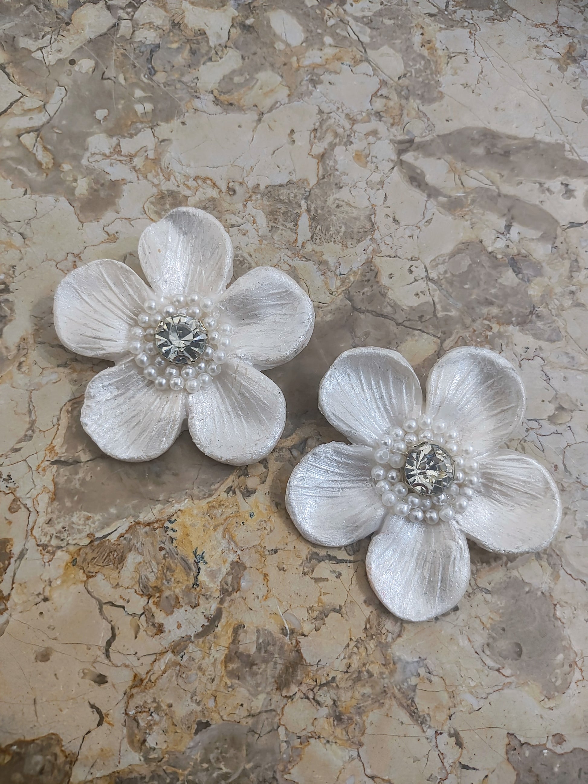 Ручно рађене минђуше са бисерним цветовима од комбинације материјала као што су: